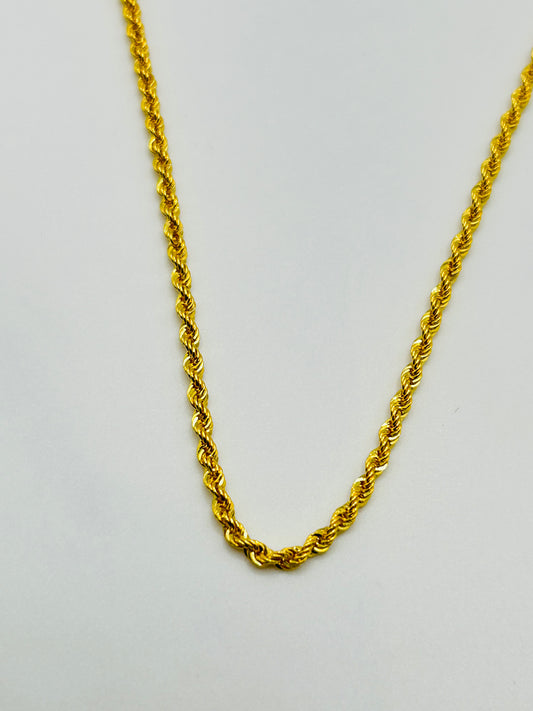 22ct Gold Rope Chain (Hollow) – 3.5g, 18 Inches, Hallmarked
