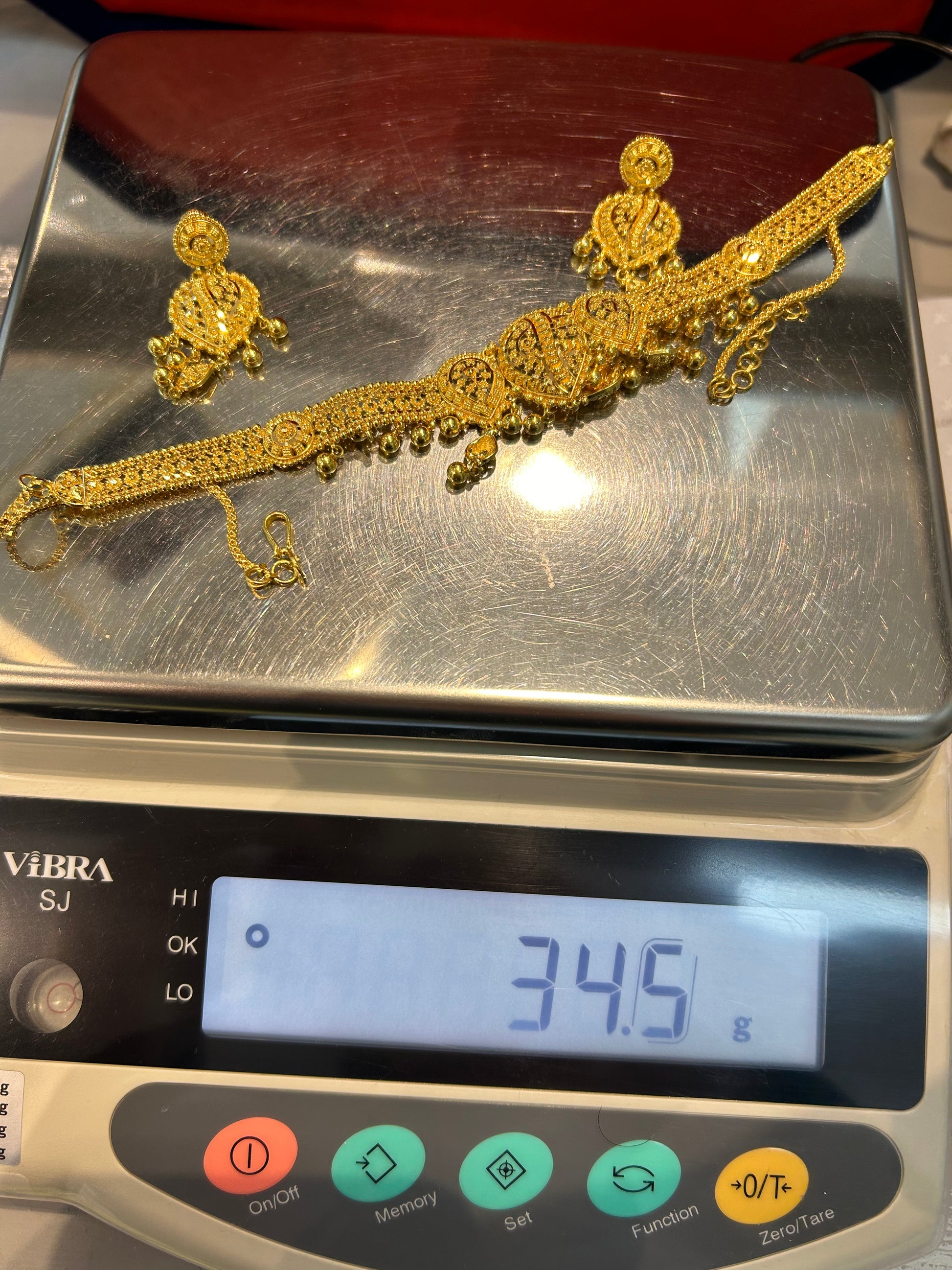 Weighing 34.5 grams and fully UK hallmarked, this choker set guarantees authenticity, purity, and exceptional craftsmanship. Ideal for weddings, special occasions, or as a valuable investment piece.